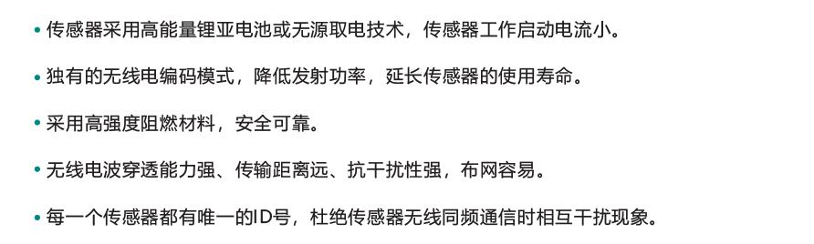傳感器使用高溫大容量鋰電池供電,集成低功耗、抗干擾、無線加密、傳感技術(shù)于一體。產(chǎn)品結(jié)構(gòu)材料選用熱穩(wěn)定且絕緣強(qiáng)度高的材料,保證了在電氣環(huán)境下工作的穩(wěn)定性和可靠性。