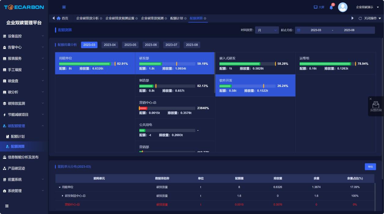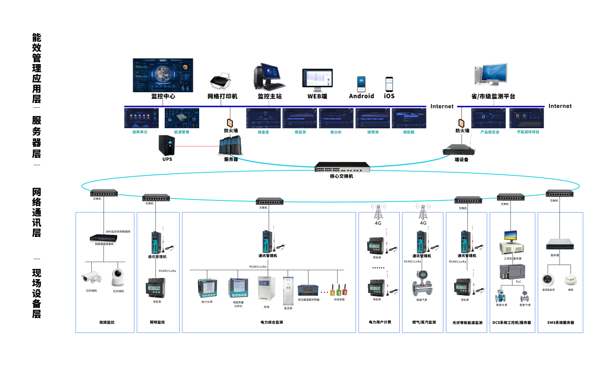 數字化能碳管理系統平臺是支撐工業企業和園區提升能耗雙控和碳排放雙控管理水平的信息系統,是加強工業節能降碳管理,推進數字技術賦能綠色低碳轉型的基礎工具。可支撐企業申報綠色工廠和零碳園區,滿足《工業企業和園區數字化能碳管理中心建設指南》中十二項功能,即能耗查詢、能源消費量和強度計算、能源消費分析與用能策略推薦、能效對標、能流分析、能效平衡與優化、用能與碳排放預算管理、碳排放、碳足跡核算、供應鏈碳管理、碳核查支撐、碳資產管理等功能。