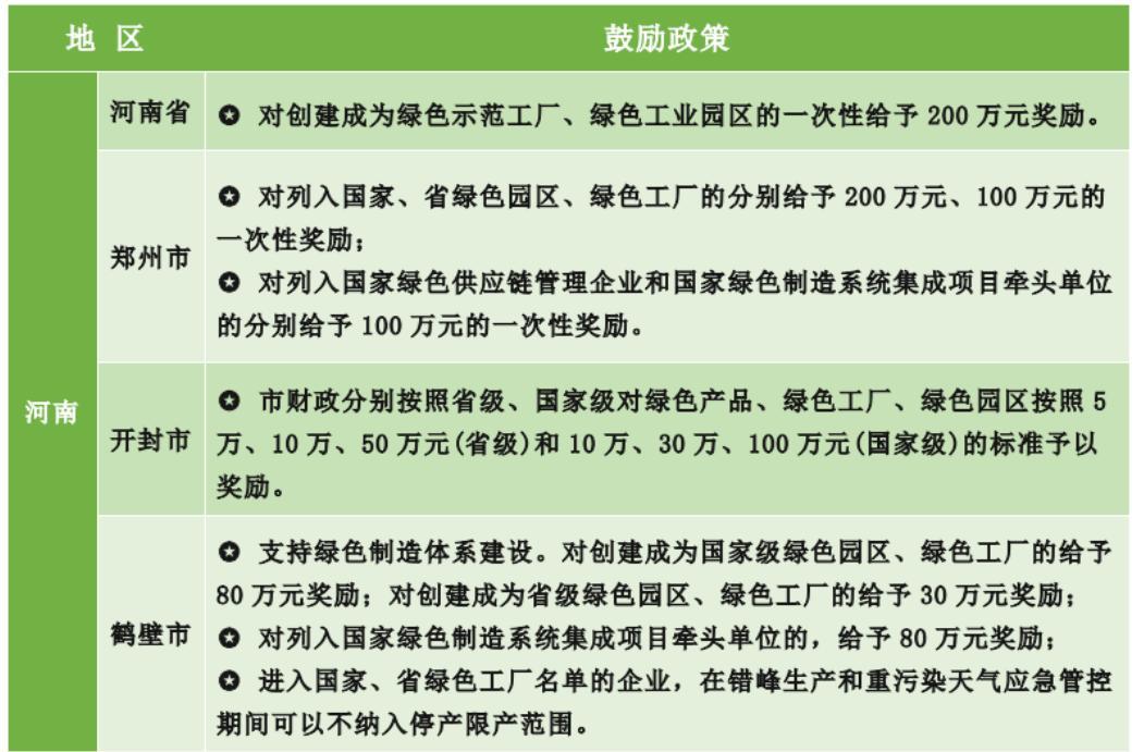 鶴壁市:對獲得省級綠色工廠稱號的企業給予一次性獎勵30萬元。