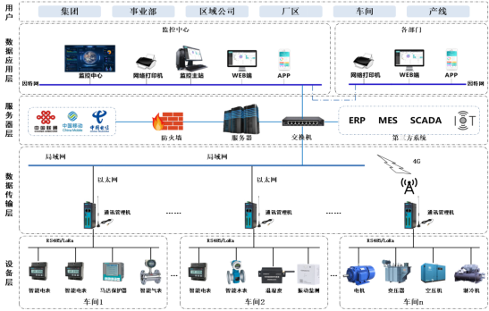 智慧能碳管理平臺,融合“了物聯(lián)網(wǎng)+互聯(lián)網(wǎng)+大數(shù)據(jù)”等技術(shù),對企業(yè)水、電、氣、冷、熱等能源使用狀況管理,及現(xiàn)場壓力、溫濕度、設(shè)備運(yùn)行健康度等參數(shù)實行集中監(jiān)測、管理和分散控制,實現(xiàn)不同場景下的能源及碳排放監(jiān)測、分析、管理、評估和預(yù)測,為企業(yè)的節(jié)能降碳、精益能效管理提供數(shù)字化平臺。