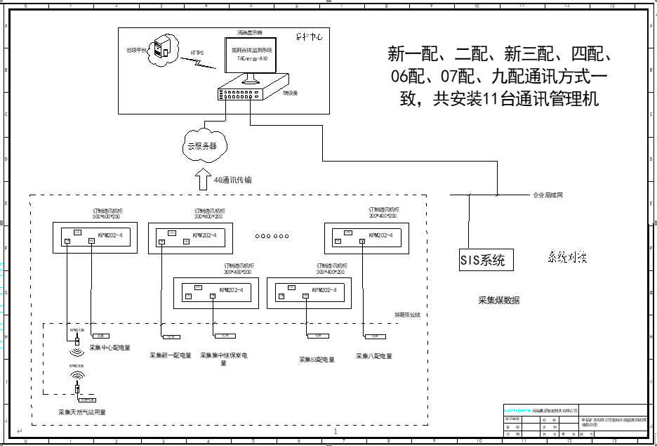 企業(yè)現(xiàn)有3條總進線,電廠1#聯(lián)絡(luò)變和電廠2#聯(lián)絡(luò)變兩條總進線進線柜位于35KV開閉所配電房內(nèi),需加裝2臺三相導(dǎo)軌式智能電力能效終端KPM37-W采集上傳數(shù)據(jù);金雞灘變電主進線位于工業(yè)場地35KV配電房內(nèi),需加裝1臺三相導(dǎo)軌式智能電力能效終端KPM37-W采集上傳數(shù)據(jù)。兩個配電房各加裝1臺4G通訊管理機,將數(shù)據(jù)發(fā)送至內(nèi)網(wǎng)主機。